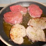 -When the oil is bubbling place the steaks in the pan. Cook approximately five minutes on each side for medium rare.