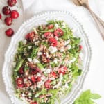 I’m digging this cherry madness as a sassy desk lunch or super light dinner, but it would make an equally fabulous appetizer or side for your summer soirées. It’s easily adaptable (swap cherries for peaches or plums, goat cheese for feta, quinoa for farro, etc.), you can obviously bulk things up with some grilled chicken or steak if you like, and it comes together in a flash. It also happens to be a total looker, so I’m hoping you’ll work it into the rotation STAT.