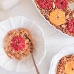 - Bake for 20 minutes until the oat mixture is just beginning to set. Top with the remaining almonds and orange slices. Return to the oven and bake for another 20-25 minutes until the oatmeal is set and the top is very lightly browned. (Personally, I like to sprinkle the orange segments with turbinado sugar and pop the oatmeal under the broiler for a minute or two to caramelize the citrus. This is totally optional, but it’s pretty easy, so…why not?)