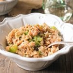 I’m also thrilled to report that despite its decadent appearance, this casserole is actually pretty inoffensive on the health front. Whole-wheat orzo packs a decent amount of fiber, turkey sausage provides protein without too much fat, and each portion has a hefty serving of vitamin and antioxidant-rich broccolini. Plus, the cheese sauce has a base of heart-healthy olive oil and low-sodium chicken broth, both of which add big flavor while cutting calories and saturated fat. Boom. Wedding diet approved!