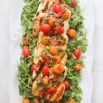 - Drizzle the tomatoes with a little olive oil and place them on the grill. Cook for 4-6 minutes, rotating occasionally, until they’re lightly charred in spots. Remove from the grill and let cool slightly.