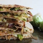 This quesadilla is easily one of the best things that you will ever put in your mouth. It’s the type of creation that makes me want to post 70 glamour shots of melting cheese, Brussels sprouts browning in bacon grease, and caramelizing onions accompanied by a string of expletives and leave it at that. However, for those of you who enjoy details, I shall do my best to articulate the all-consuming awesomeness of this delightful taste treat.