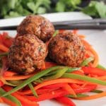 I like to serve my chia seed pork meatballs over some stir-fried vegetables for maximum nutrition, but you could also try them with quinoa, brown rice or noodles, or banh mi-style in a sandwich. Oh, and for the record, you can use chia as a binder in any type meatballs, friends. Just add 2 tablespoons of chia seeds per pound of meat. And in case you were worried, you won’t actually taste the chia seeds, and no, they won’t give your meatballs a weird texture. I promise.