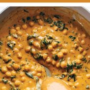 - Add chickpeas, spinach, and cilantro; cook until chickpeas are heated through and spinach is wilted. Mash the chickpeas ever so slightly with the back of a wooden spoon if you want to change up the texture and make it more creamy.
