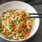 I doubled the recipe (and simplified a bit) using 1 lb of ground chicken and 16 oz of pre-shredded coleslaw mix and it was so good! I’m sure including the bok choy would be great, but you can’t beat the pre-shredded cabbage mix for simplicity 🙂 Really yummy and quick! Will definitely make this again!