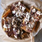 Although I’m very partial to the toppings listed, they’re merely suggestions. Mix and match as you see fit (pretzels, cornflakes, and honey-roasted peanuts are excellent subs), and feel free to up the fancy factor with a little Aleppo or black pepper and some flaky sea salt if you like. You can also experiment with Club or Ritz crackers (if you’re into extra buttery thangs) or graham crackers as the base. And when it comes to this Sunday, I highly recommend throwing a handful of V-Day M&Ms or heart-shaped sprinkles into the mix. A little kitsch is good for the soul.