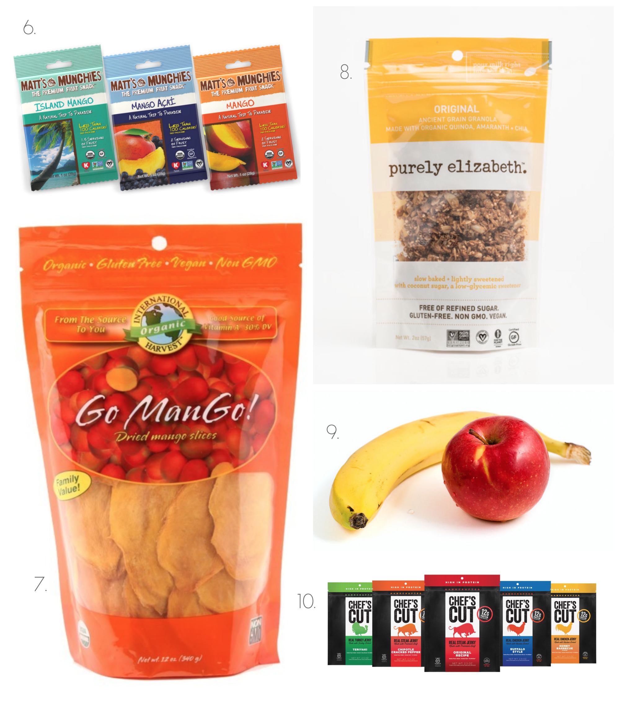 7. International Harvest Go ManGo! Organic Dried Mango Slices. Speaking of mango, I’m a big fan of traveling with dried mango (fun fact: I love mango), which is a delightfully tart-sweet snack. But beware most store-bought brands!! International Harvest is one of the few with no added sugar, so always check the ingredients before you buy dried fruit, capiche?