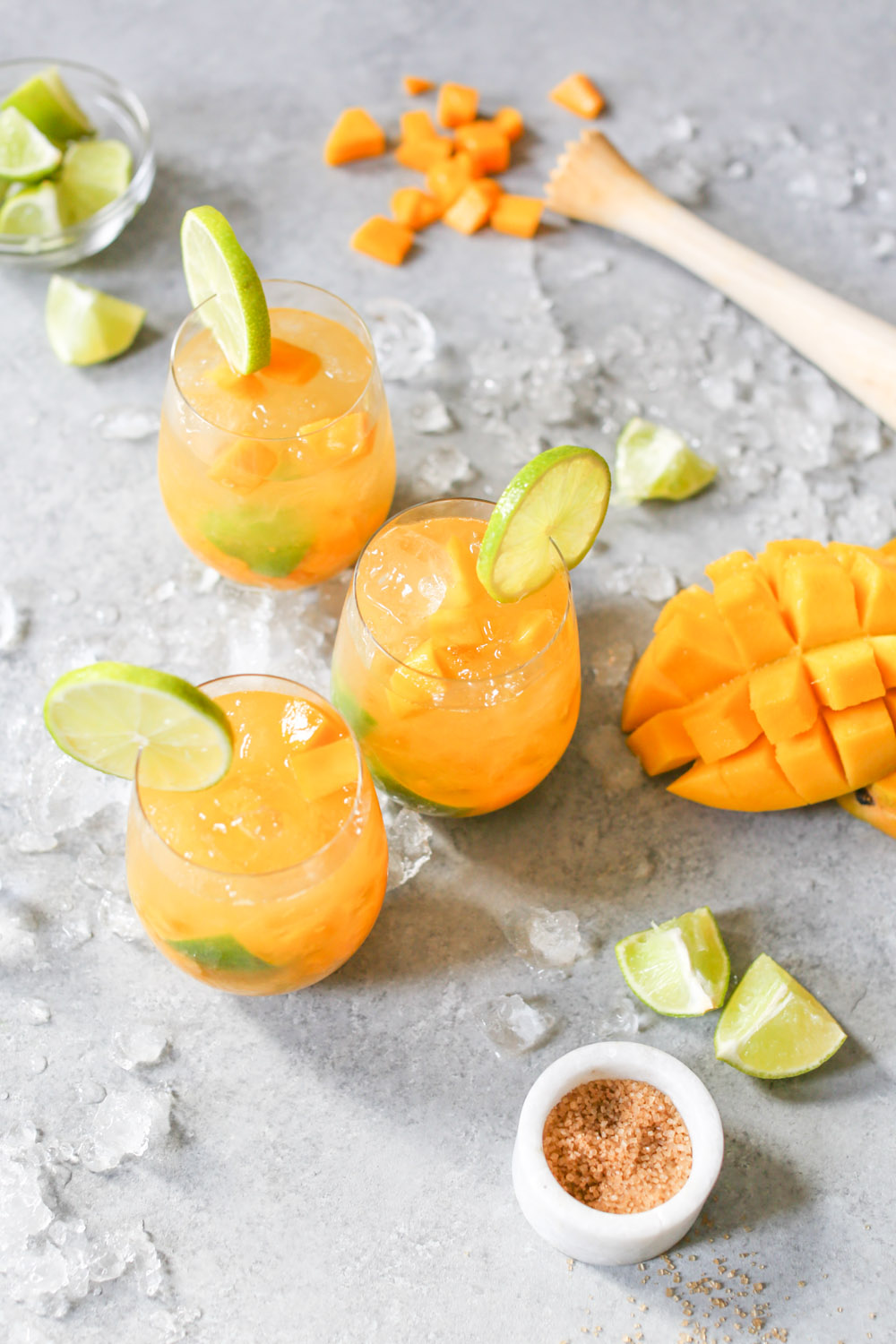 Like I said, this mango caipiroska is STRONG, so if you’re a lightweight or sensitive to the taste of booze (sorry, can’t relate), feel free to top your glass with a little club soda.
