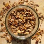 Anyhoo, my new athletic lifestyle has increased my appetite rather drastically, and I’ve been thinking a lot about healthy portable snacks that Logan can carry for me in his fanny-pack. (I may have embraced outdoor exercise, but I refuse to sport a fanny-pack. Unforgivable.) I wanted to make something healthy, satisfying, and in keeping with my adopted “crunchy Colorado” persona. Naturally, granola was the first thing that popped into my head, and after some experimentation in the kitchen, Maple Cinnamon Granola was born.