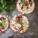 In the meantime, I’ll just be in my NYC kitchen whipping up these summer-y flatbreads on my grill pan and drinking extra chilly rosé on the couch. (Potentially naked, unless my broken AC gets fixed soon.)