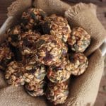 Oh, and as far as easy recipes go, this one’s a total winner, friends. You just throw the sticky ingredients in the food processor with some spices, pulse them a few times, stir in the oats, nuts, seeds and chocolate, and then roll the mixture into balls. There’s maybe 10 minutes hands-on time, and you’re left with 22 little bites of heaven that will keep for a week in the fridge (or infinity weeks in the freezer). Hallelujah.