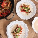 - Pile the fajita mixture onto the warm tortillas. Top with cashew cream and fresh cilantro if you’re into it.