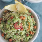 Quinoa Green Goddess Bowl with Crispy Chickpeas and Lemon-Tahini Dressing: (Serves 2 very generously)