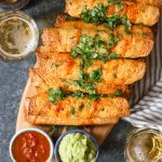 At long last, the taquitos are here!!! And just in time for your Super Bowl extravaganzas. Like most finger foods, these bad boys were inspired by my roommate, who loves taquitos with a fiery passion. Logan’s affinity for the crispy roll-ups, especially “dirt sticks” (aka the taquitos that you see alongside the hot dogs on those roller thingies at 7-11), was one of the first personal things he shared with me in our early courtship days. Because we were long-distance (Paris and NYC), most of our correspondence took place over gmail, and I distinctly remember the “dirt stick” missive. I pulled it up this a.m. for fun, which turned out to be a huge mistake, as it led me straight down a very hilarious and romantic rabbit hole and is the reason you are reading this post slightly later than usual…