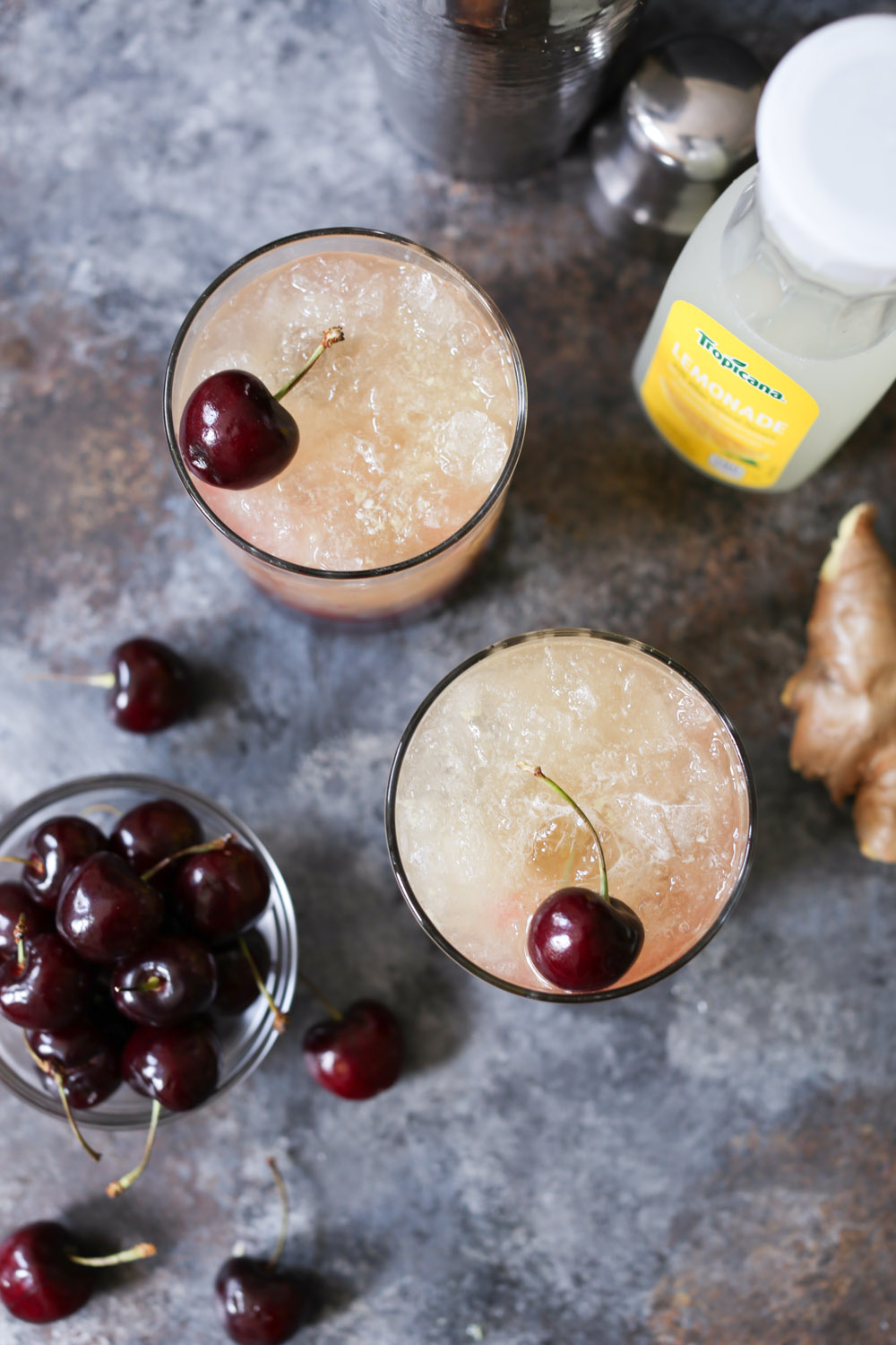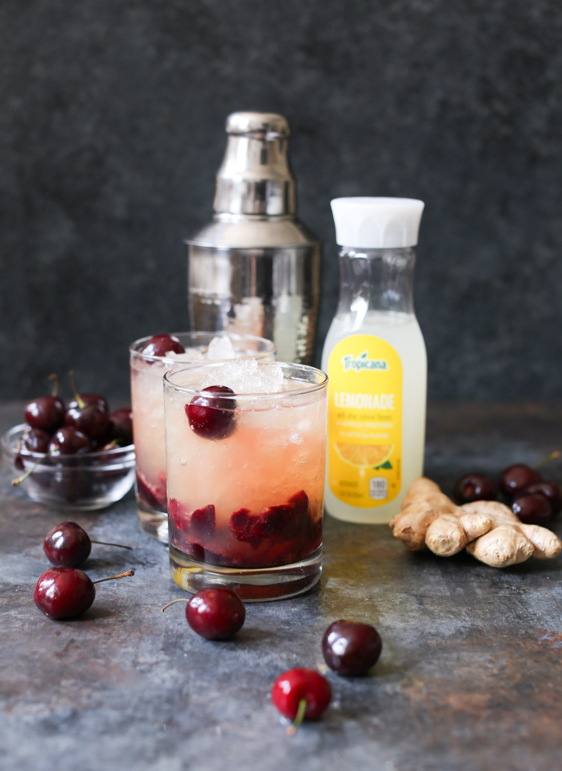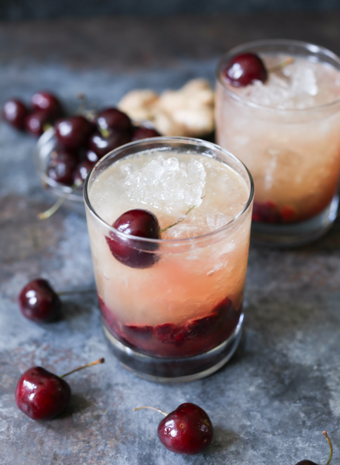 A couple quick you do you options for this recipe: The cocktail is on the spicy side, so if you’re not into heat, start with a ¼ teaspoon of grated ginger and work up from there. Prefer a more tart cocktail? Squeeze a lemon wedge over the cherries before muddling. Not into cherries or can’t find fresh? This cocktail would be awesome with any stone fruit, particularly peaches. Don’t be afraid to mix things up. (Pun intended.)