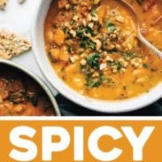 Spicy Peanut Soup with Sweet Potatoes + Kale.