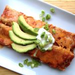 Instead of fatty ground meat, these enchiladas are stuffed with a healthy mix of shredded chicken breast, black beans, corn, onions, bell peppers, and spinach. Lean protein and vegetables are a beach body’s best friend, especially when they’re wrapped in my favorite low-carb vegetable tortillas. Unlike traditional enchilada sauces, this incredibly flavorful tomato-based version contains no oil and is virtually fat free. Obviously, enchiladas wouldn’t be the same without a layer of melted cheese, and you can enjoy this one guilt-free because each serving has less than a quarter cup of reduced-fat cheddar. Top them with a little heart-healthy avocado or a dollop of fat-free sour cream and scallions and celebrate without worrying about your waistline.