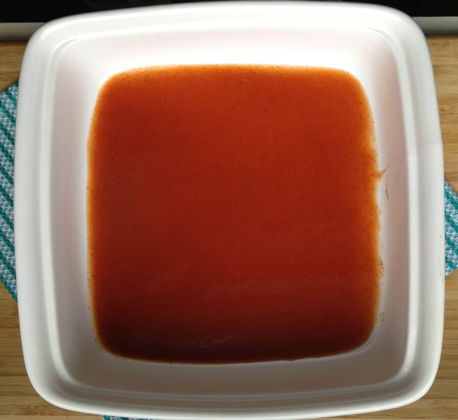-Pour ½ cup of your enchilada sauce into a 9 x 9 inch baking dish.