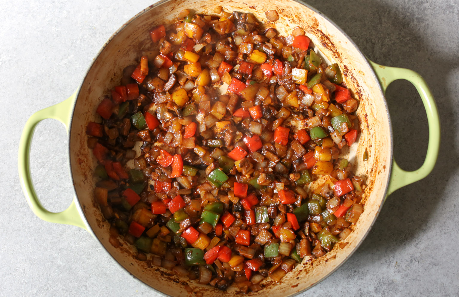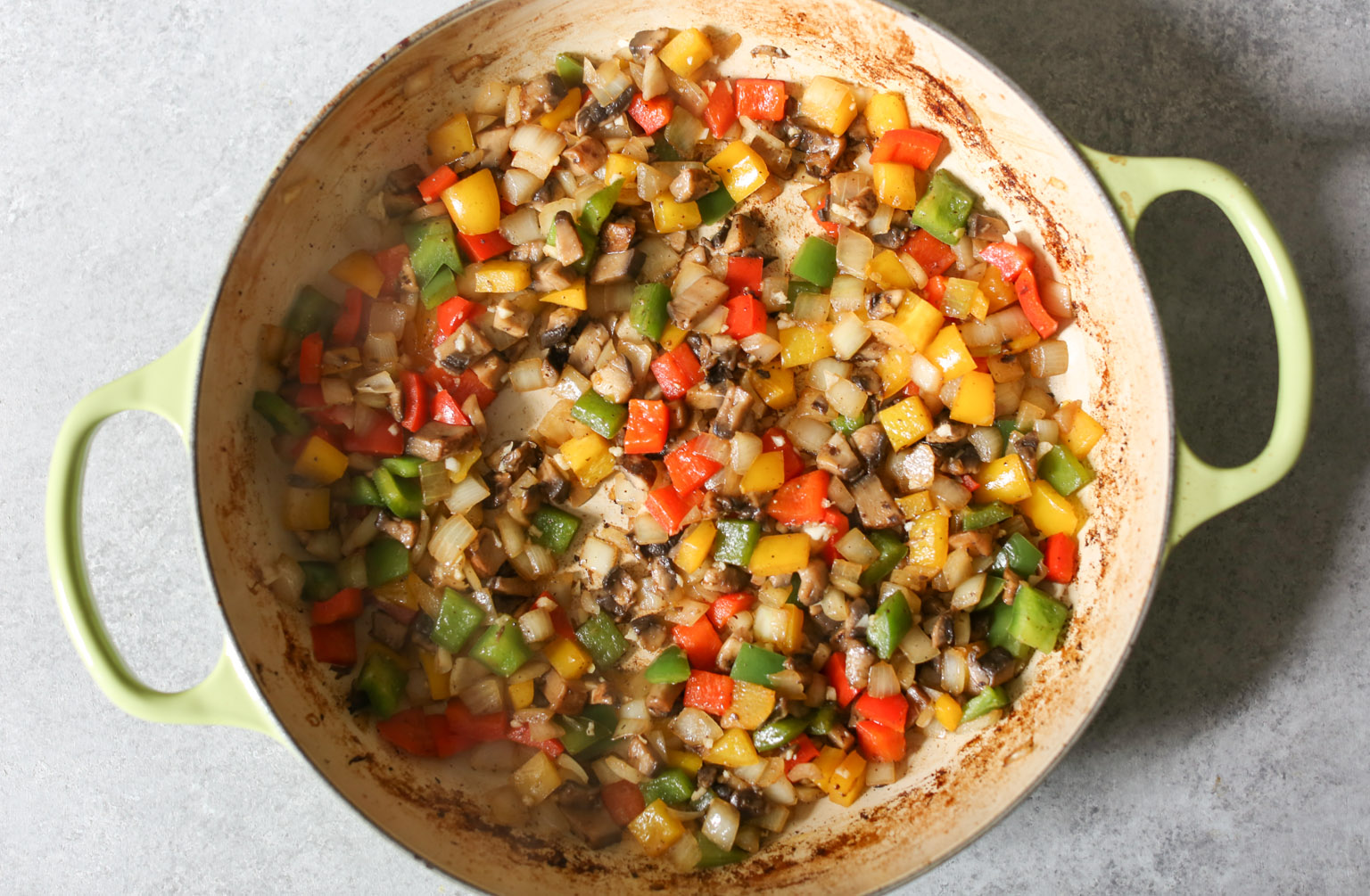 - 1½ bell peppers diced (I used a mix of red, yellow, and green peppers, but you do you.)