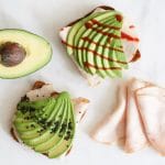 If you need some healthy snack ideas, I’ve got you covered. Make some quinoa cakes or quinoa with roasted vegetables at the beginning of the week to heat up whenever you get hungry. Light soups like chicken soup or minestrone are also smart choices to keep in the fridge. Guacamole is another good option, but go easy on the chips, fatty. If you’re lazy and want a quick fix, this avocado toast with turkey and sriracha (or sesame) is exactly what you need: