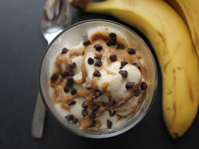 -When smooth, spoon your “ice cream” into cups and top with your favorite healthy toppings. Boom. Guilt-free sundae, dudes.